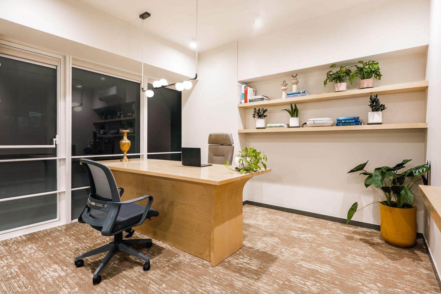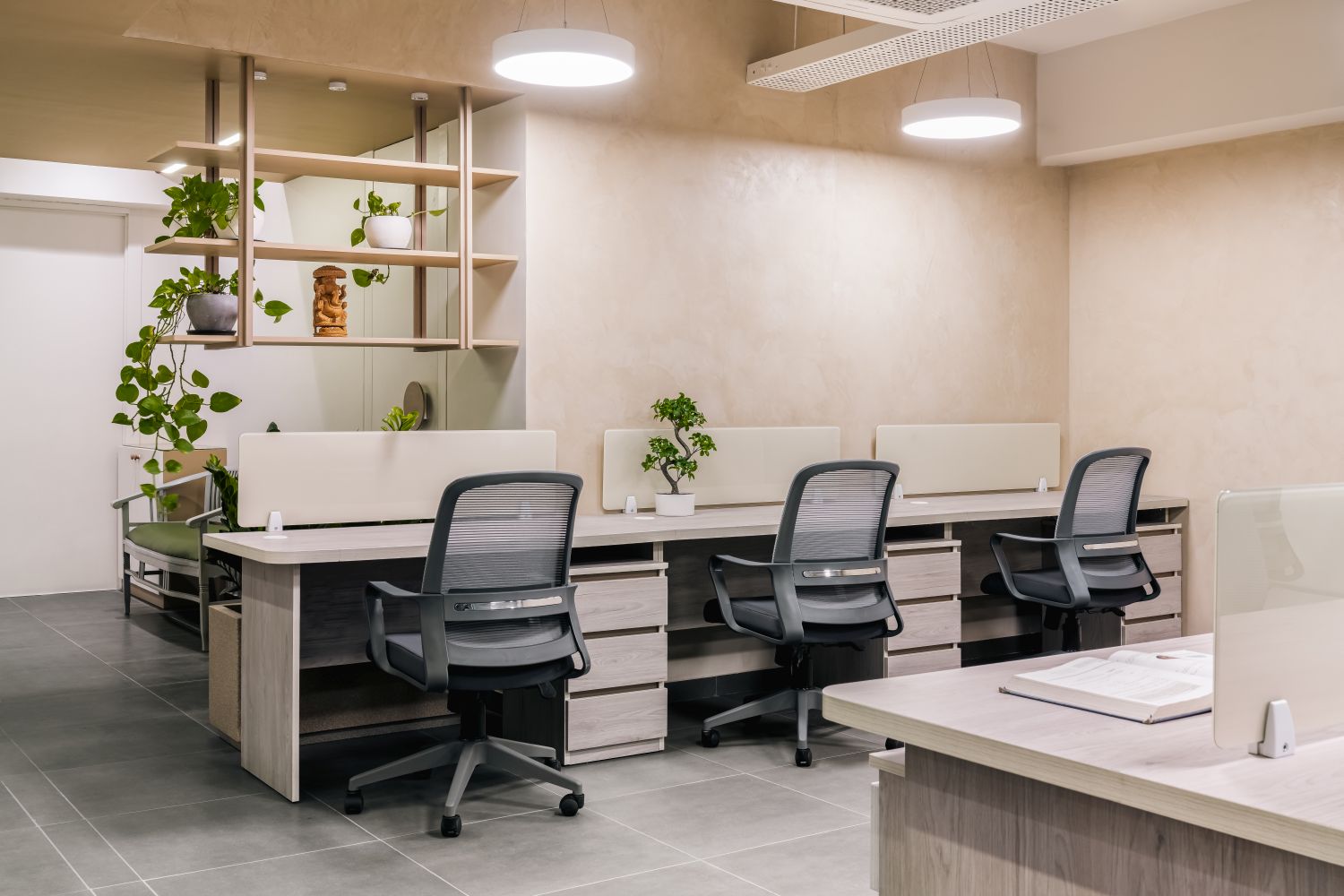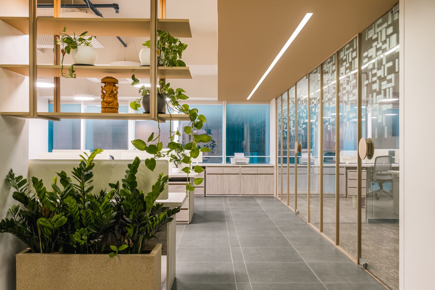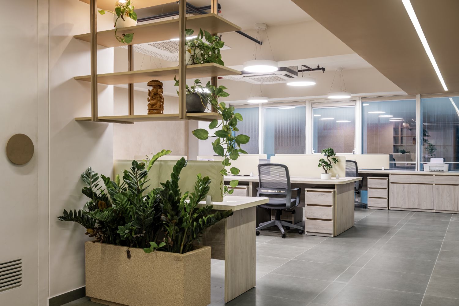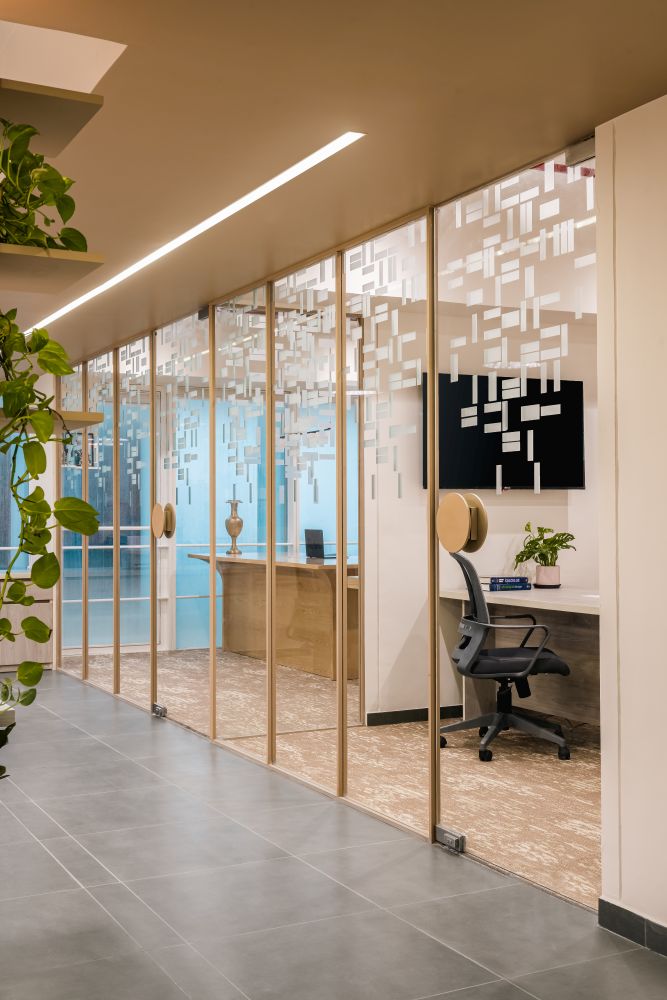 Designed for a medical technology firm, the interior balances professionalism with a calm, welcoming atmosphere. Warm tones, natural light, and a minimalist palette create a focused yet comfortable work environment. Glass partitions and subtle zoning maintain openness while providing privacy for individual workspaces. Carefully selected furniture, artwork, and greenery introduce warmth and character, supporting both productivity and well-being.